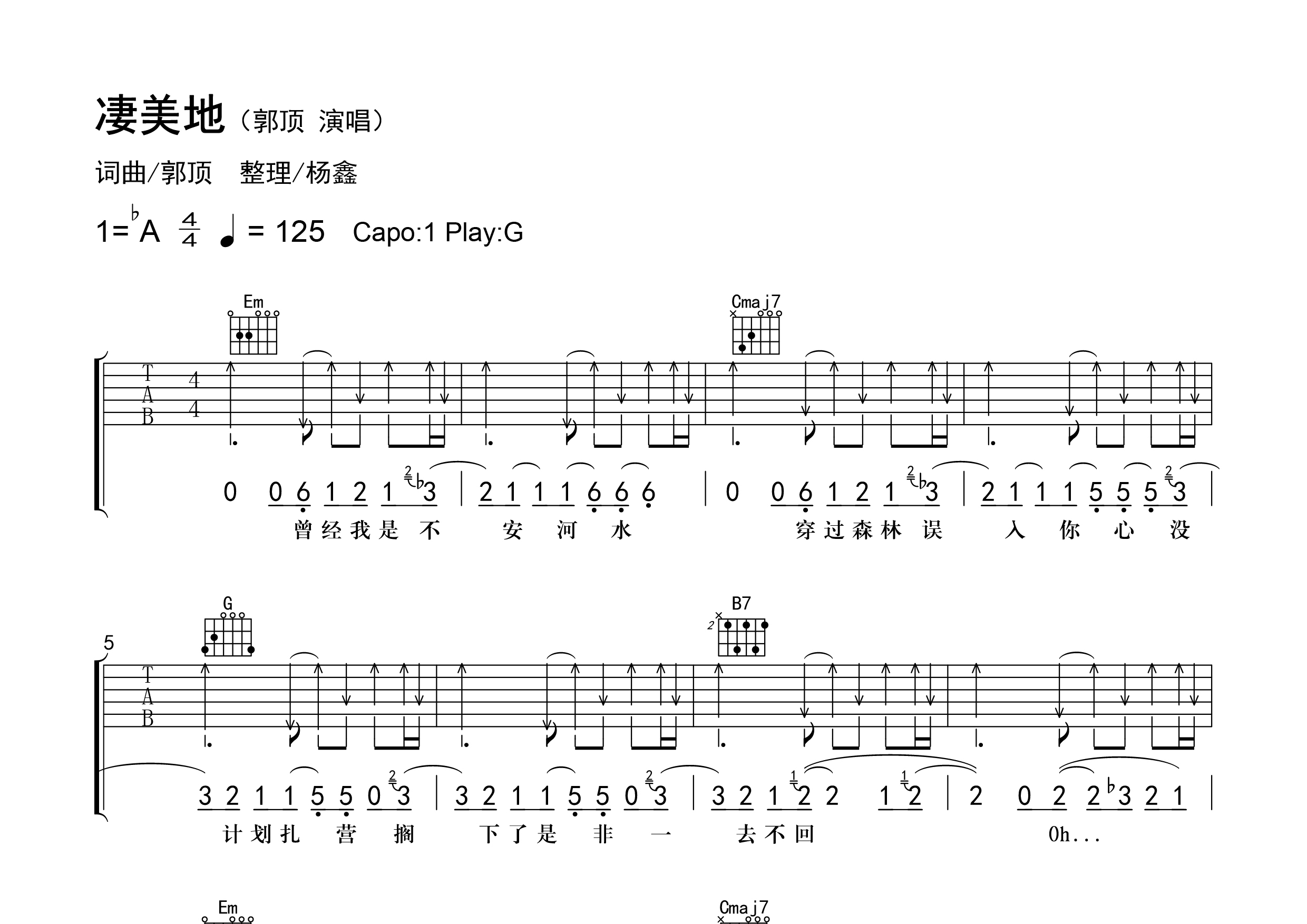 | 本帖最后由 老杨教吉他 于 2023-7-6 09:22 编辑 【调弦】标准调弦。 【基本信息】原曲bA调,选调G,变调夹夹1品,每分钟125拍。 【编配情况】根据原曲精细整理。 【和弦难度】大横按、大跨度和弦。 【节奏难度】最小时值16分音符,含附点、切分、弱起、吉他技巧。 【难点】弹唱配合;间奏及尾奏和弦与节奏的配合。 【技巧说明】空心圈为【哑音】;M为【闷音】。 |