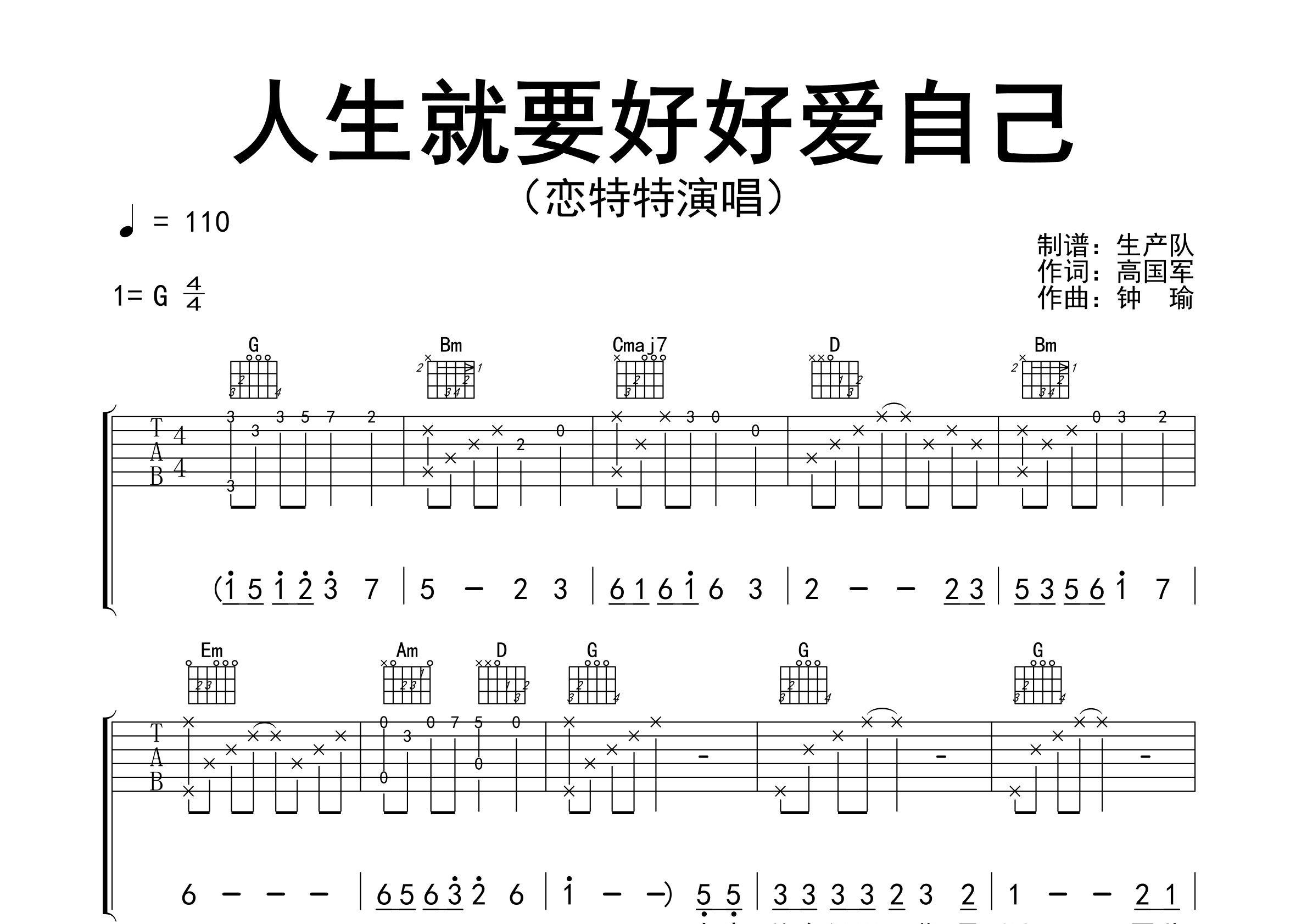 人生就要好好爱自己(原版吉他谱)【新歌速递】