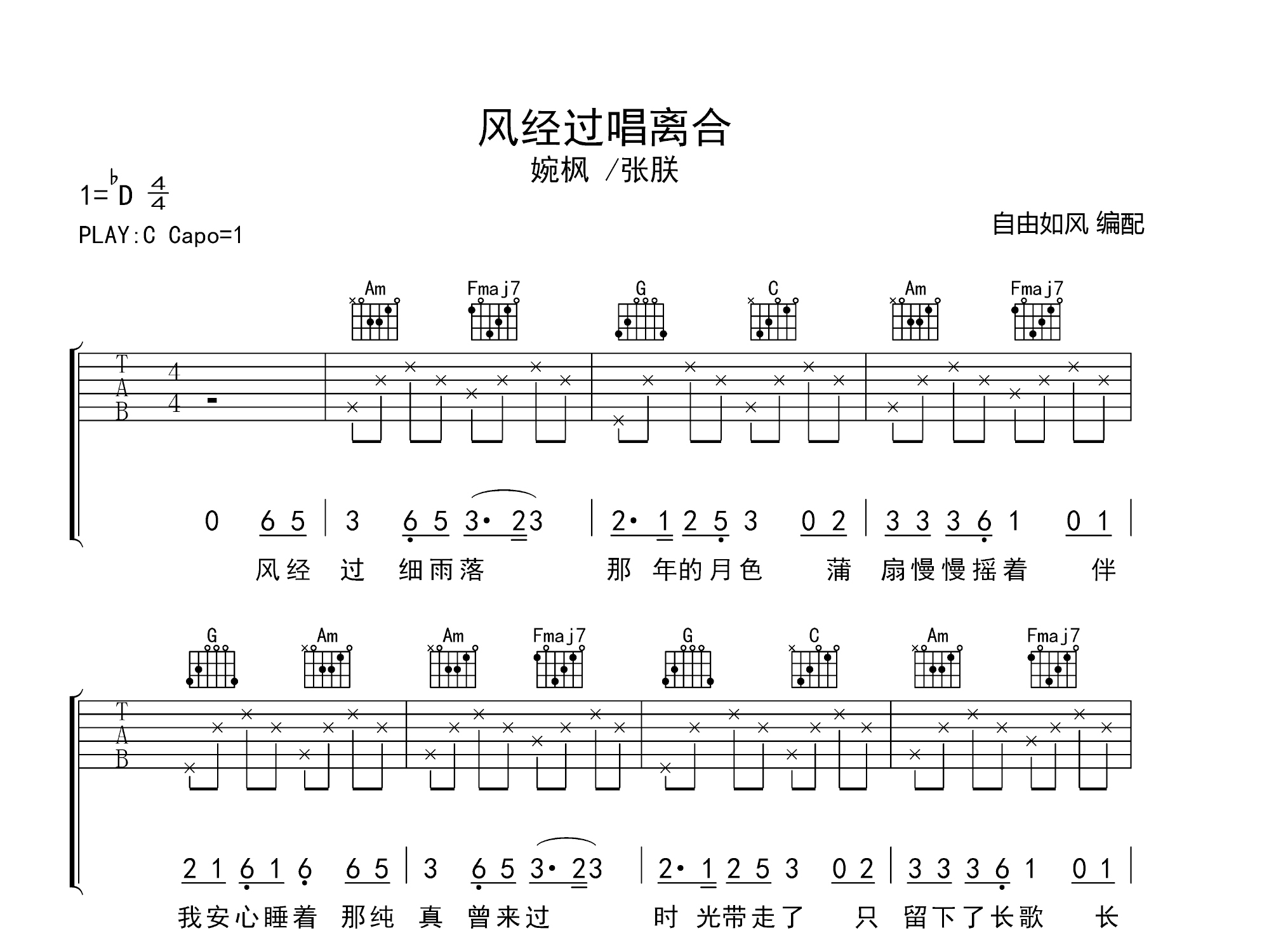风经过唱离合 (弹唱谱)