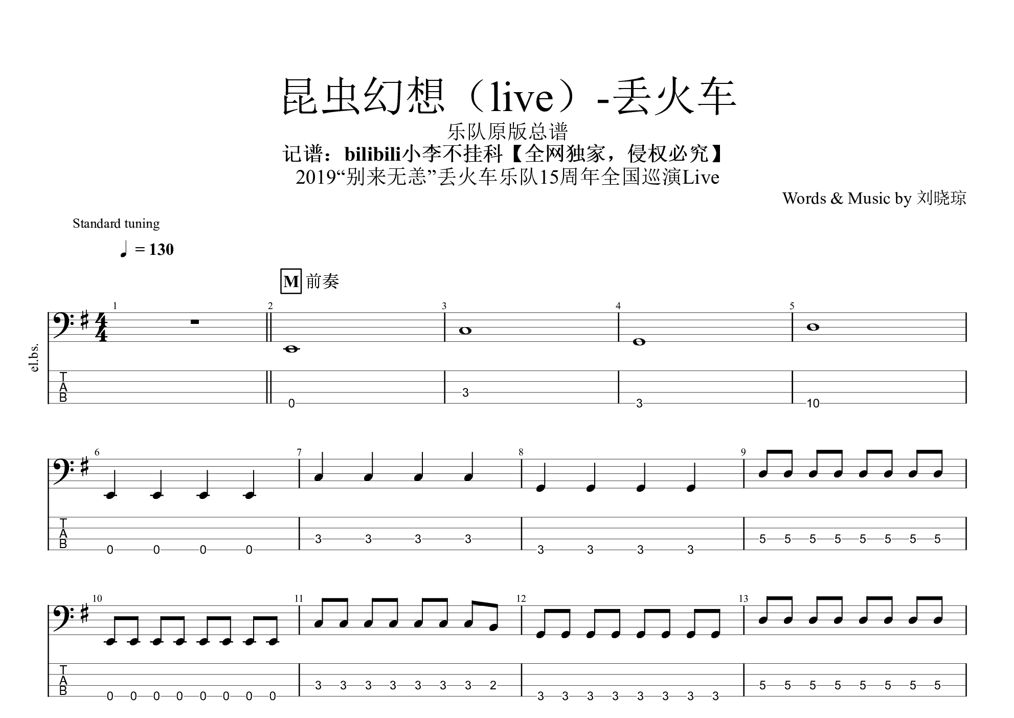 | 本帖最后由 小李不挂科制谱 于 2024-12-12 13:00 编辑 试听可去B站搜索:小李不挂科【此版本音频来源为2019丢火车别来无恙巡演南昌站,QQ音乐上有】 一分价一分货,本人的谱子还原度为100%,排版工整,对所有乐手均友好 需要扒谱可以加微信:lmylsy01161028 |