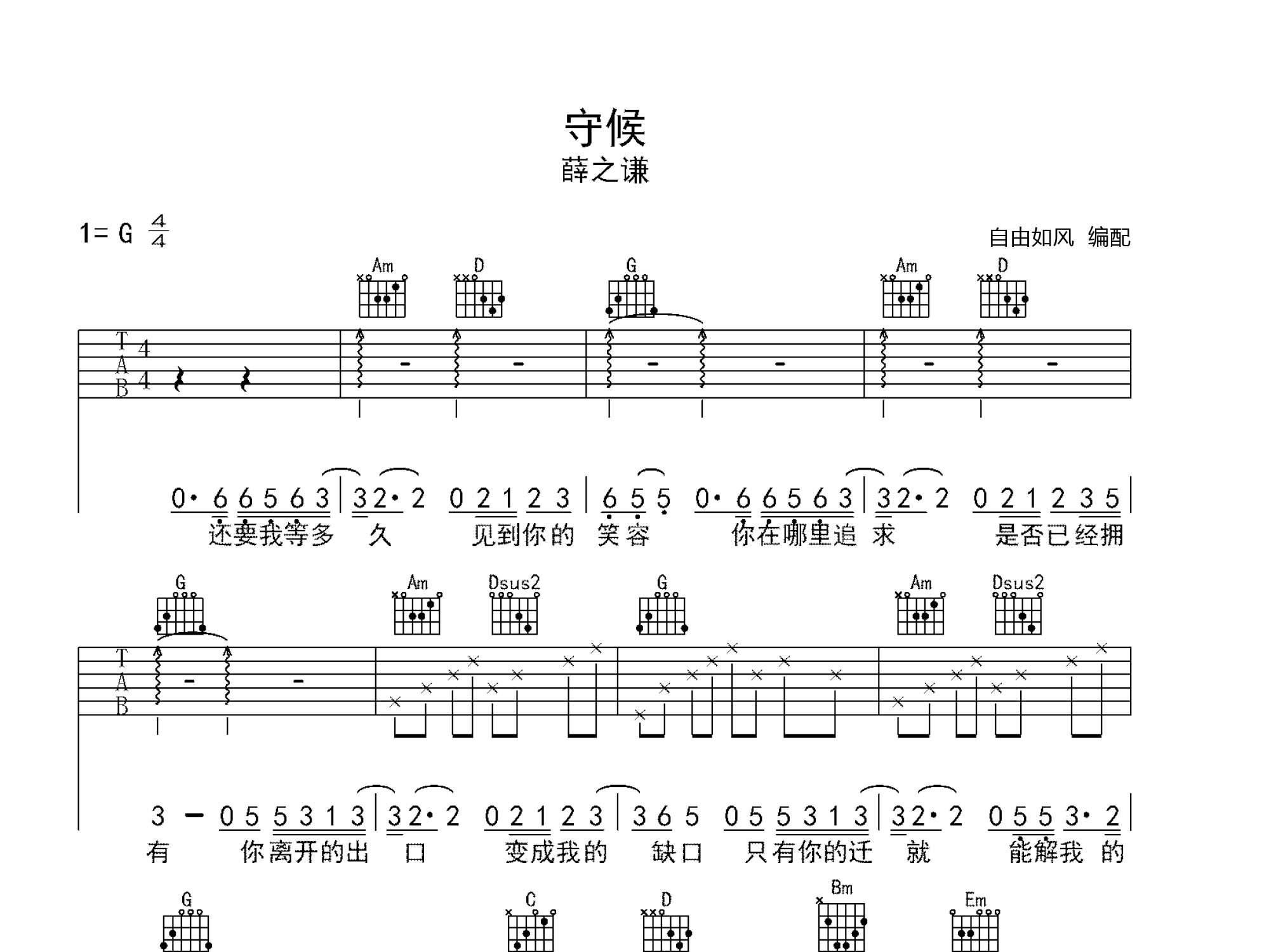 守候 (弹唱谱)