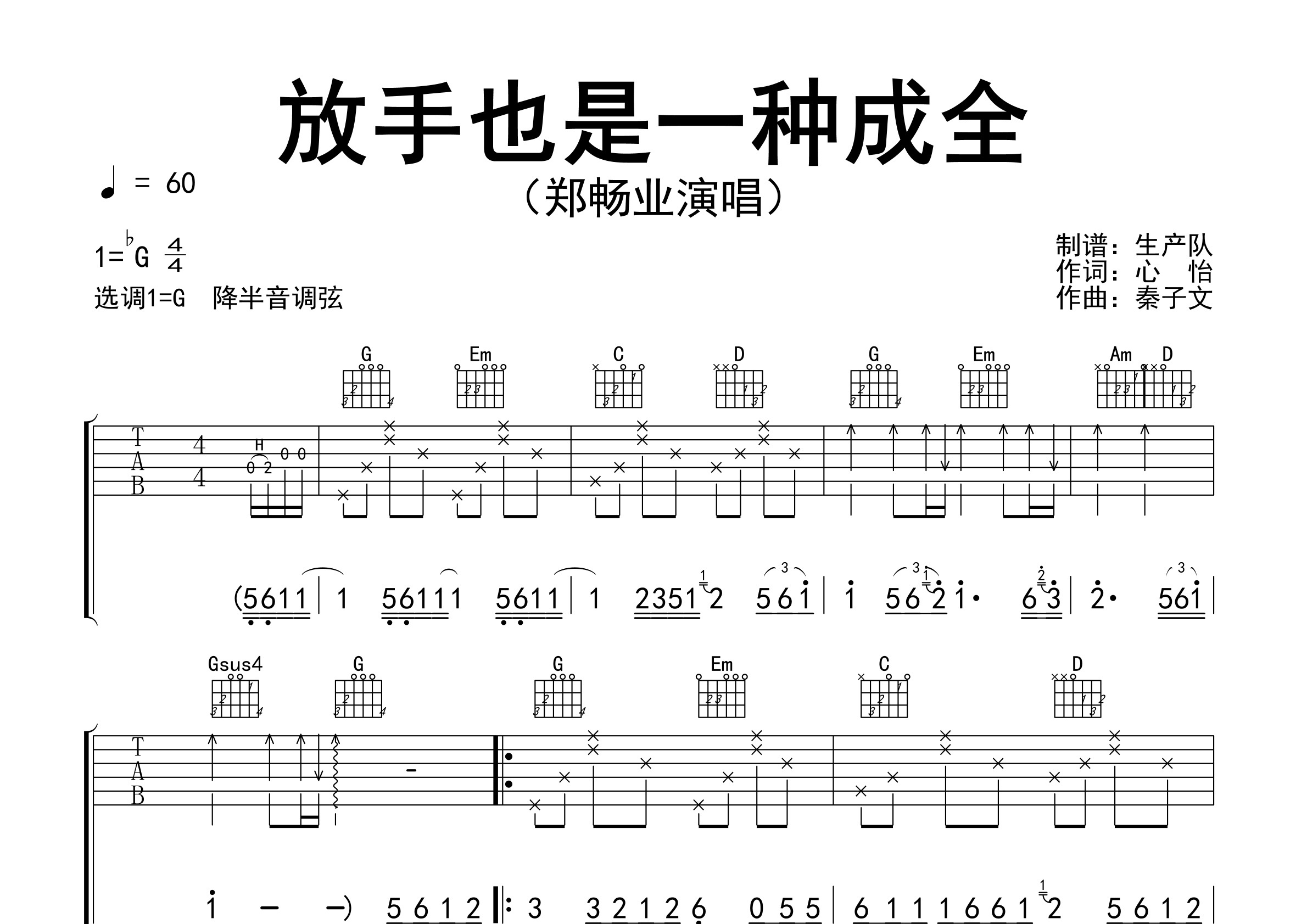 放手也是一种成全(原版吉他谱)【新歌推荐】