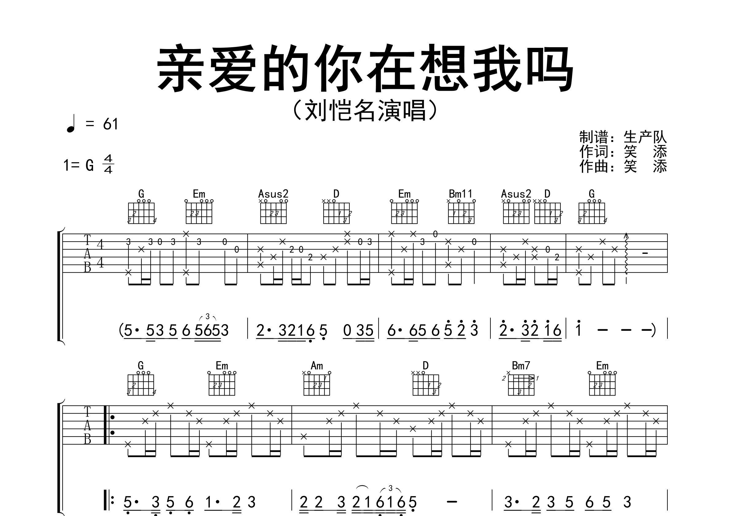 亲爱的你在想我吗(原版吉他谱)【怀旧经典】