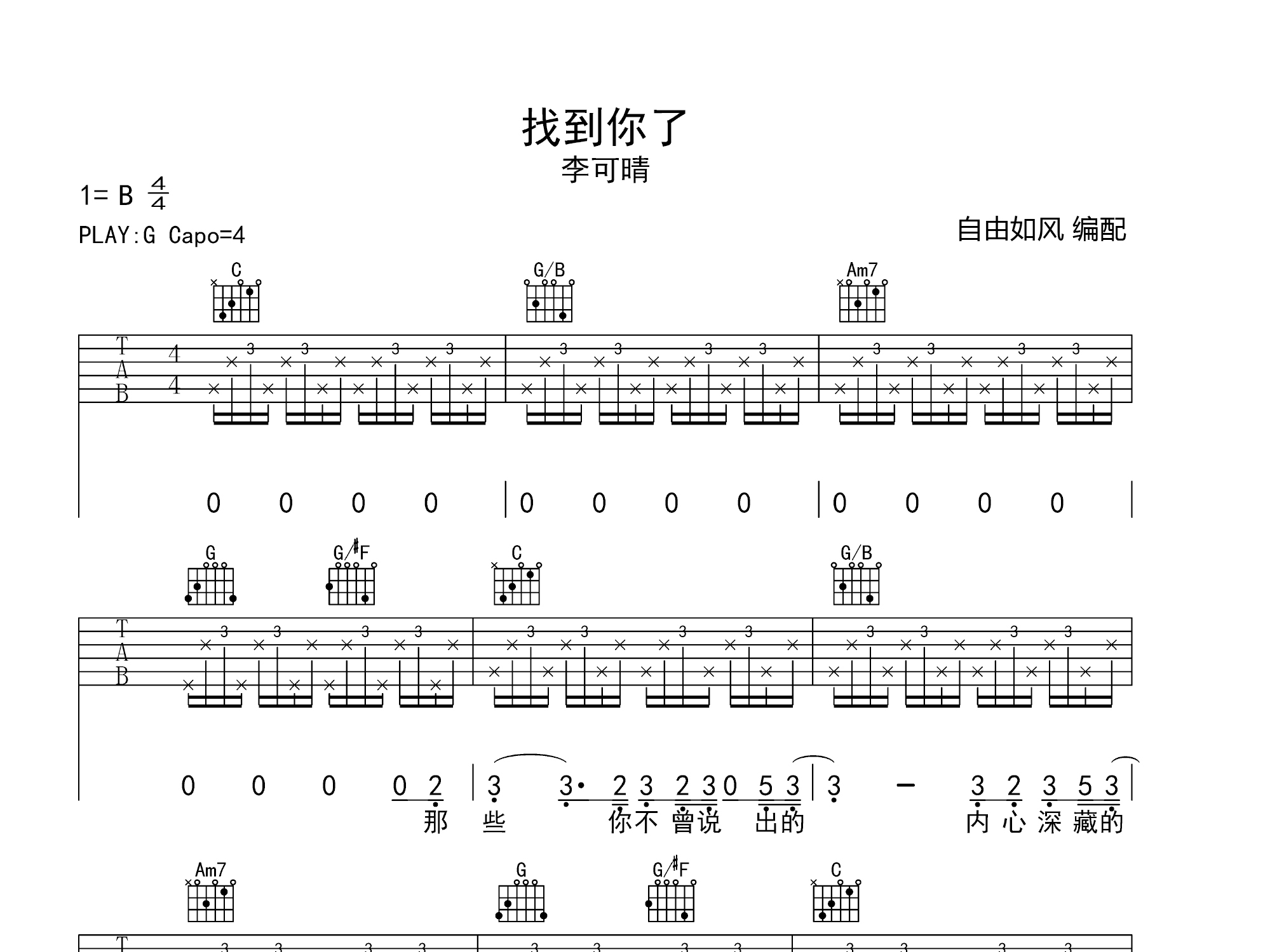 找到你了 (弹唱谱)