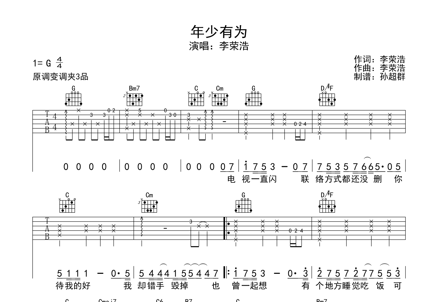 年少有为(弹唱原版带前奏)