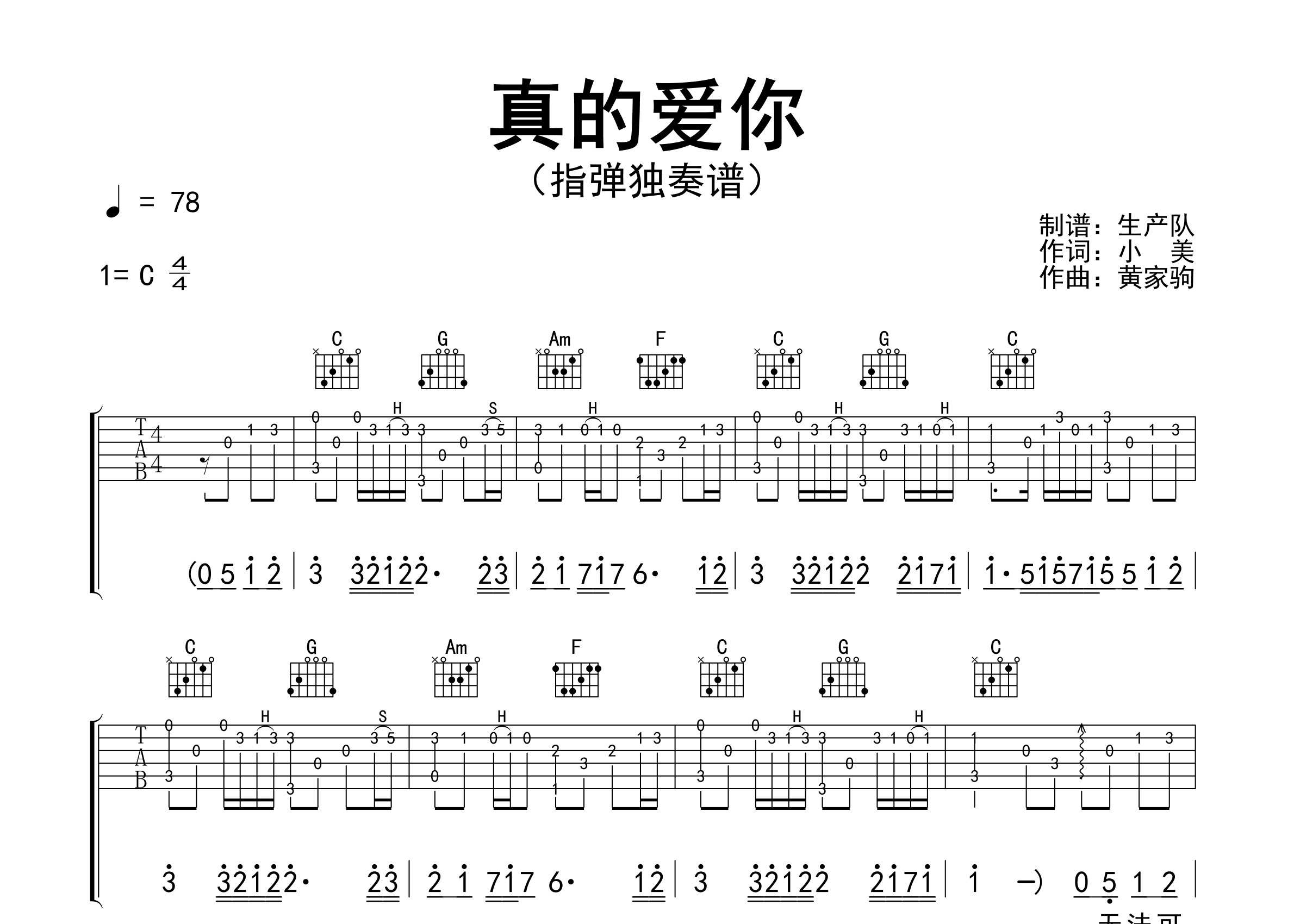 真的爱你(指弹独奏谱)