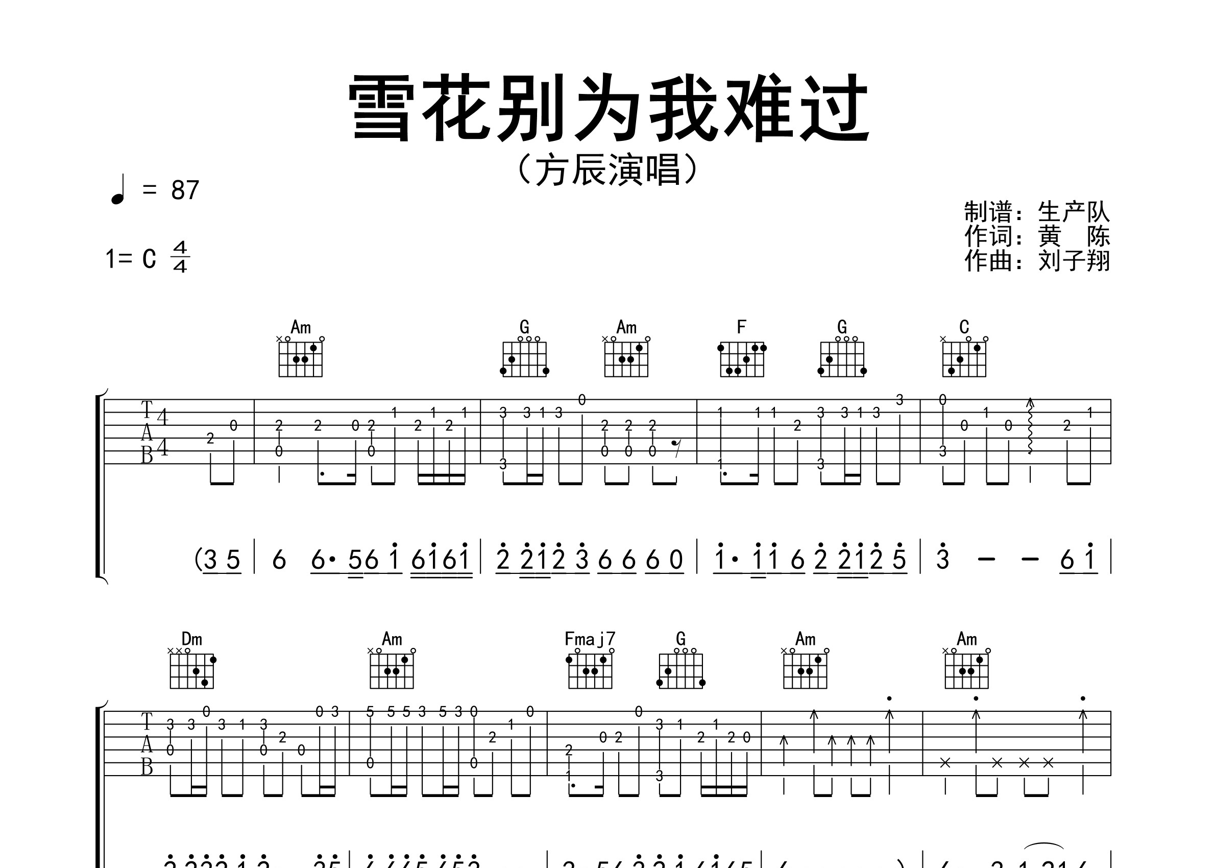 雪花别为我难过(原版吉他谱)【优质推荐】