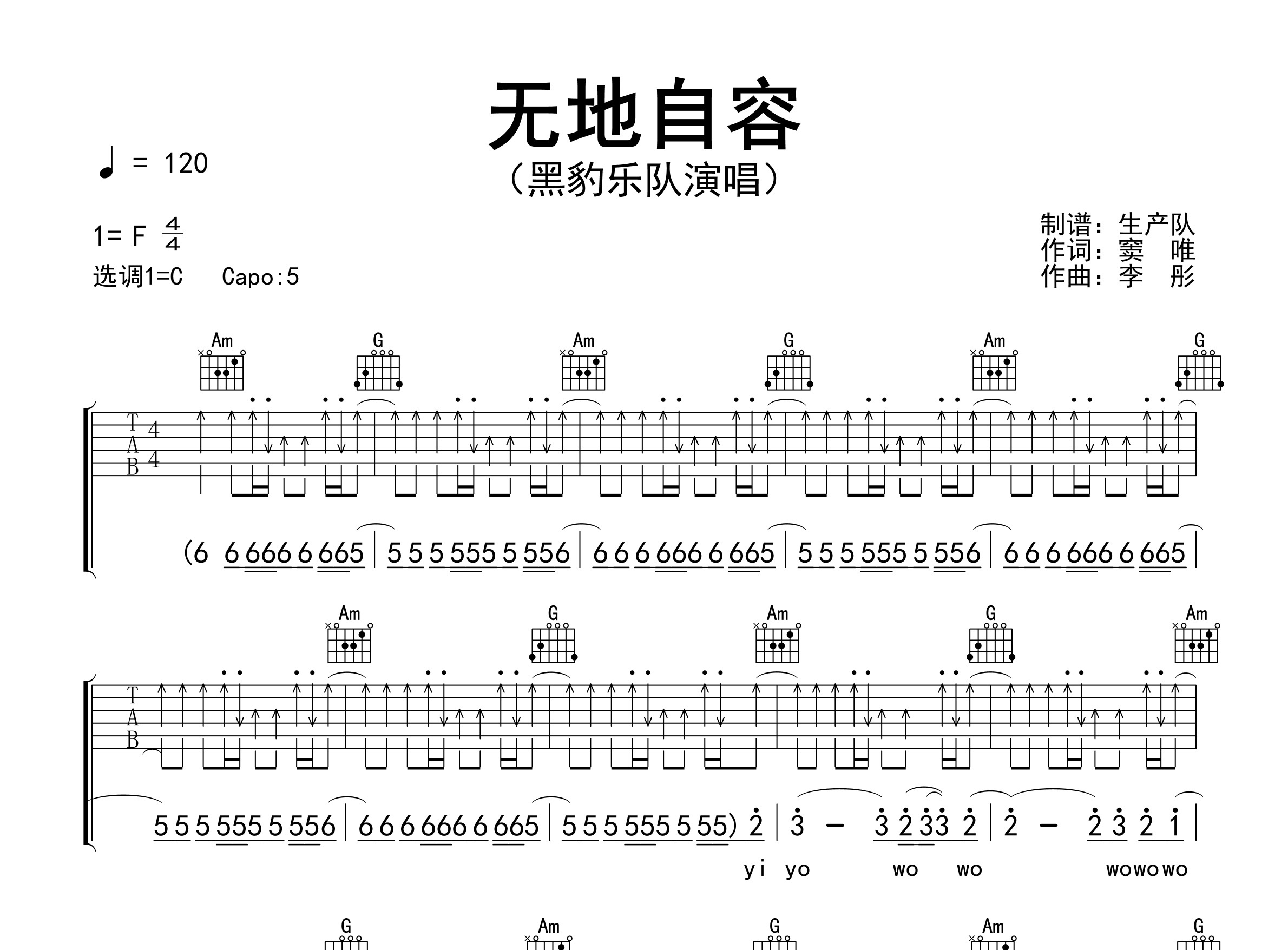 黑豹乐队演唱的歌曲《无地自容》原版吉他谱,为了更加适合吉他弹唱,力求原版,对原曲进行适当优化编配,精编完美版,致敬经典!