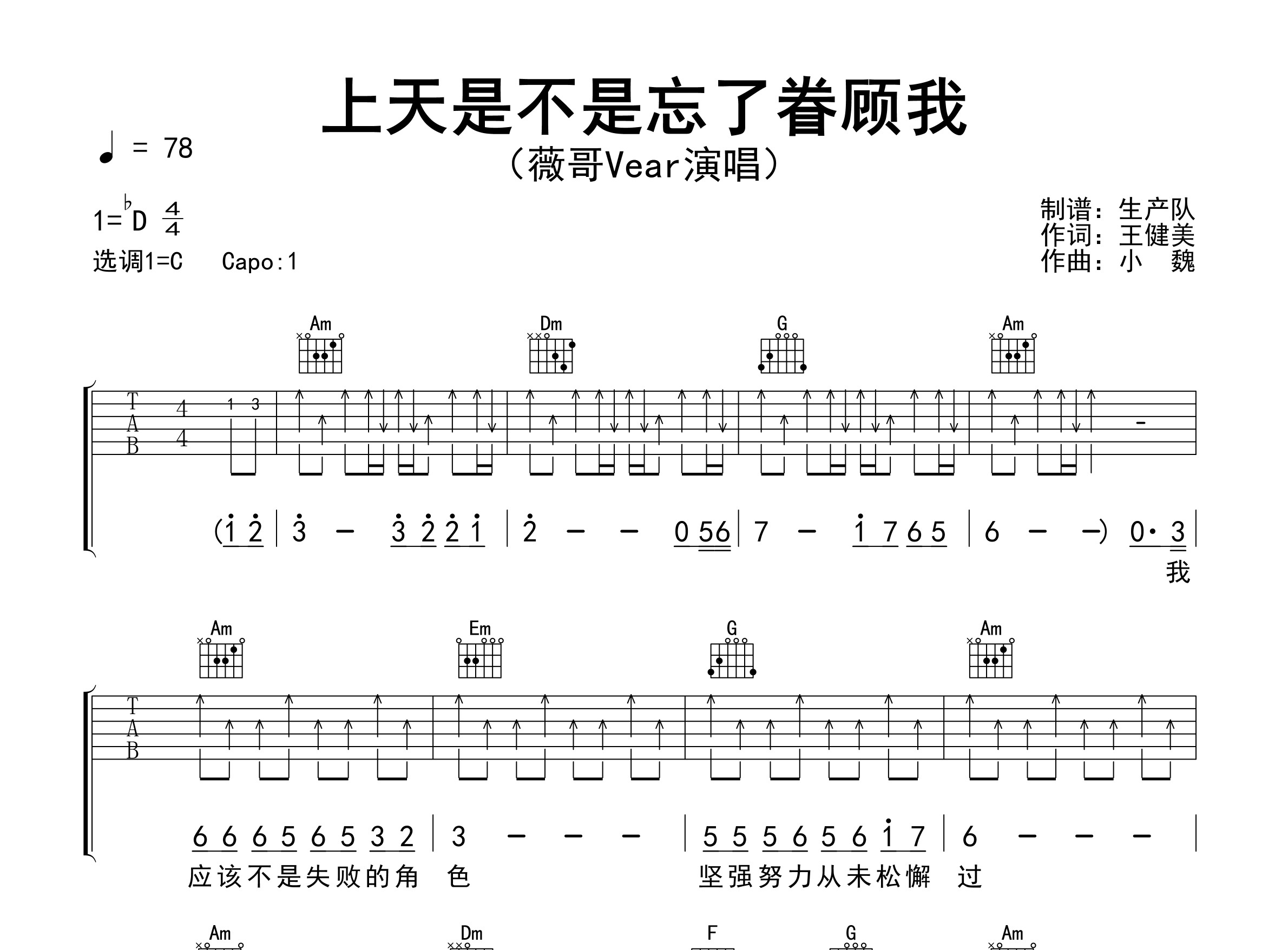 薇哥Vear演唱的歌曲《上天是不是忘了眷顾我》原版吉他谱,含精准的前奏、间奏、尾奏solo编配,精编完美版,优质推荐!