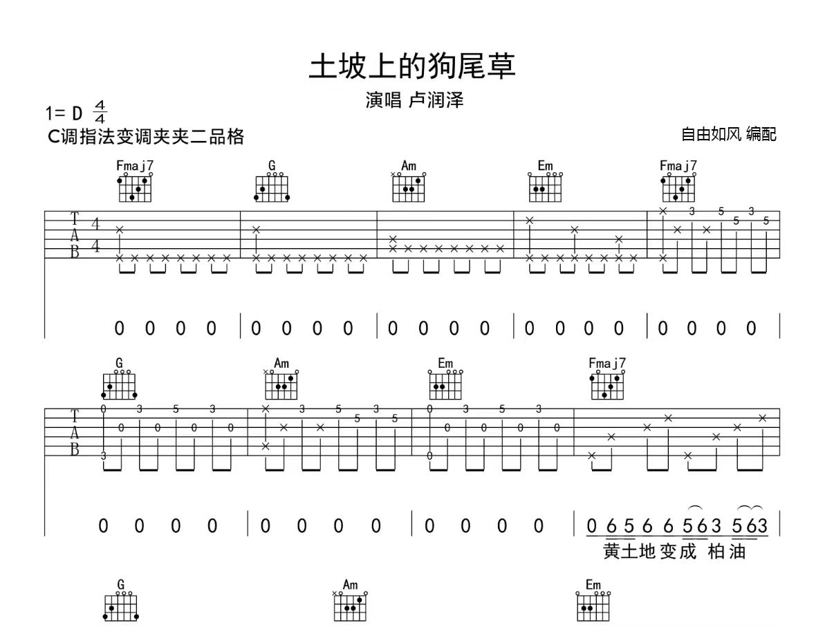 土坡上的狗尾草 (弹唱谱)